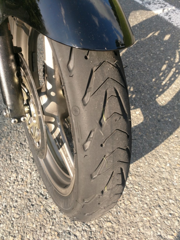 Anders gegenüber den Avon Spirit ST den ich vorher gefahren habe ist ein Einfahren des Reifen ein muß. Der Road 5 neigt immer das Moped aufzustellen, dadurch leidet ein wenig die Kurvenagelität gegenüber des Avon (das war ein richtiger Kurvenräuber). Wenn er eingefahren ist, vermittelt er ein Gripeviau ganz oben auf der Messlatte. Auch das Vorderrad gibt ein Hammer Feedback.